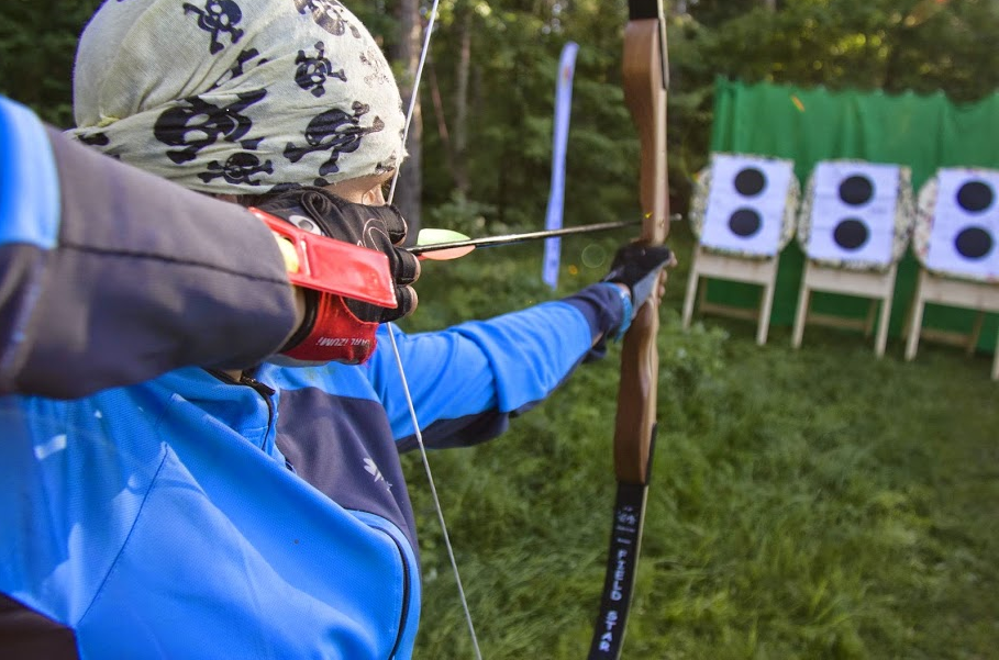 - Этап «Арчи-велотлон» в общем -то по сути состоял из двух частей. Первая включала в себя нитку со скрытыми КП на которых находились условия (расстояние от старта) для взятия КП на лыжном кругу. Тут возникли некоторые трудности, но немного пометавшись, справились и с этим заданием. Приехали на поляну где нас ждал промежуточный этап «Арчери-велотлон» - стрельба из лука, две стрелы – два КП (пристреливаться не дают) ну значит стрелять Саше, он сказал, что где то уже это делал, а у меня лучше получается стрелять из пневматики. Попадание одно из двух. Поехали на круг. Но трасс много, а нам надо проехать по одной! А по какой? Тут мы намотали лишних километра 3, пока поняли, что и где собирать. Кстати трасса очень понравилась своими подъемами, вот бы посмотреть ее зимой…