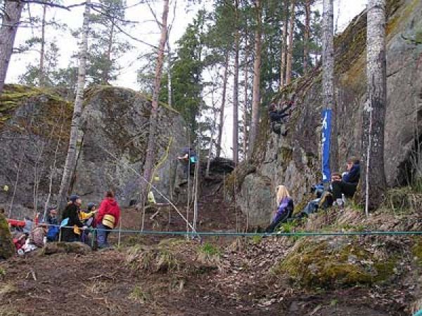 Утром 7 мая в Полях началась суета. Почти 1500 участников, плюс спонсоры и просто зрители передвигались группами и в одиночку от одного скального массива к другому, пролезали трассу за трассой, в перерывах интересовались привезенным товарами, кое-что покупали. В целом день прошел удачно. Вечером ужин и небольшие посиделки – казалось, что все замечательно.
