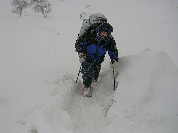 – 15 градусов, снег стал твердым, и по тропе уже можно идти без
