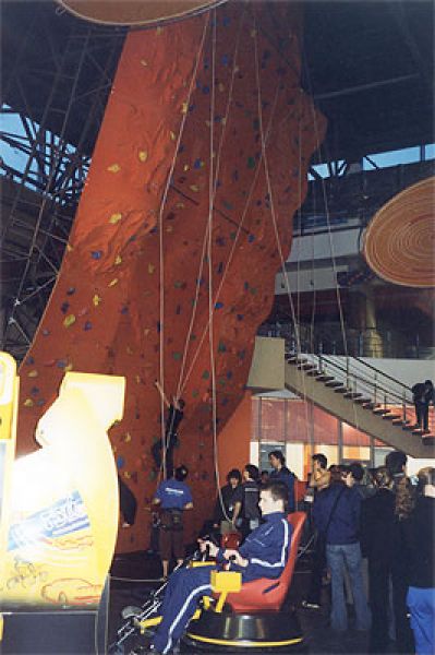 Центральное развлечение обоих комплексов «Игромакс» - скальные тренажеры Walltopia. Здесь каждый желающий, даже абсолютно неподготовленный, получив комплект необходимого снаряжения (обвязку и магнезию Beal, скальные туфли Rock Pillars и карабин Kong) может испробовать свои силы и способности скалолаза.
