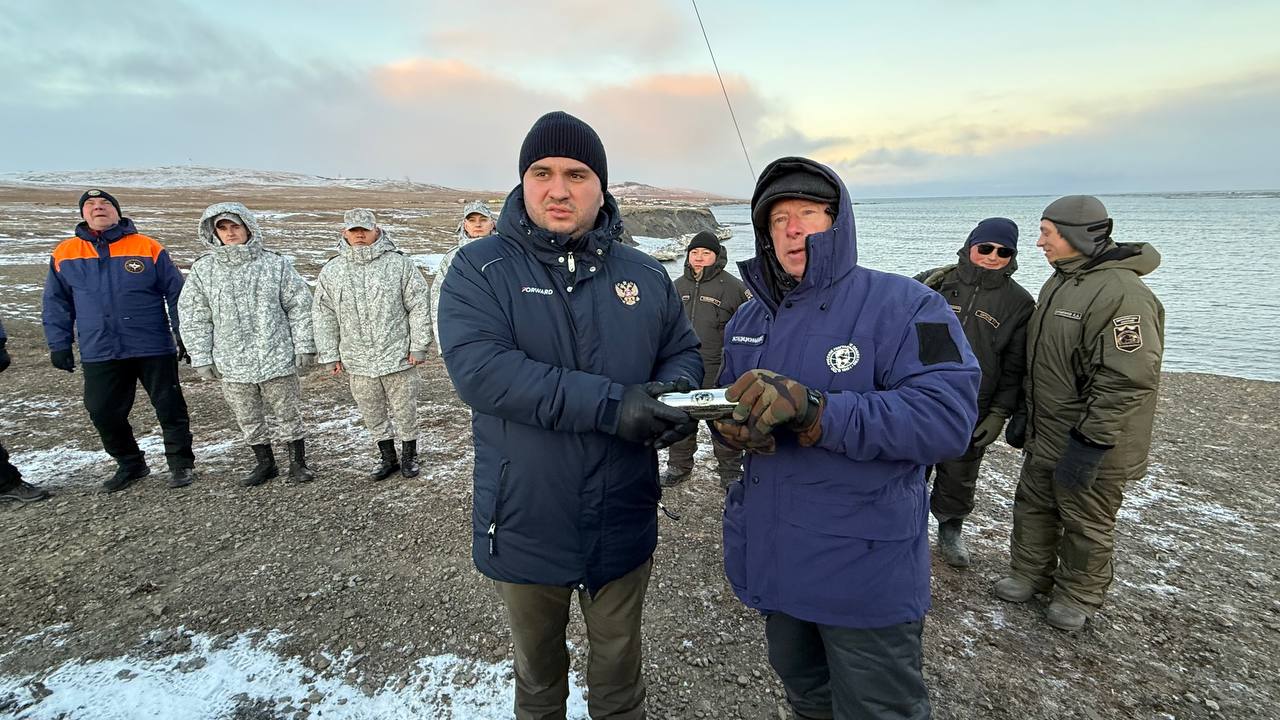 С места событий Леонид сообщает: «Извлекли письмо для потомков, прочитали его и заложили новое послание, которое будет вскрыто теперь только через 50 лет. На церемонии присутствовал Первый заместитель губернатора Чукотского автономного округа Рахим Исаев, руководители МЧС, представители Тихоокеанского флота и Русского географического общества. Мы развернули флаг БАСК, оставили на нем свои автографы. Церемония прошла в торжественной обстановке, в данный момент борт с гостями улетел с острова Врангеля, а мы остаемся здесь для дальнейшей работы над нашим фильмом».