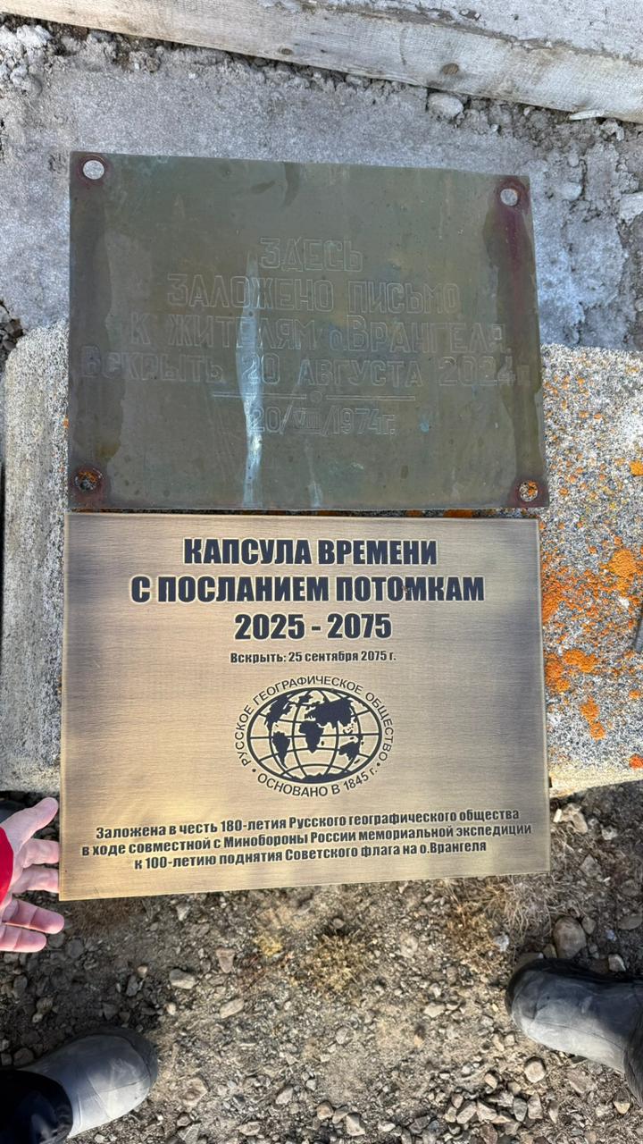 2 октября 2025 года на острове Врангеля состоялась церемония выемки капсулы времени, заложенной полярниками в 1974 году. Церемония состоялась в рамках мемориальной экспедиции Русского географического общества, посвящённой 100-летию со дня поднятия на острове флага СССР. В честь знаменательного события участники акции установили металлическую копию советского стяга, а также оставили новое послание, которое уже наши потомки извлекут через следующие 50 лет.