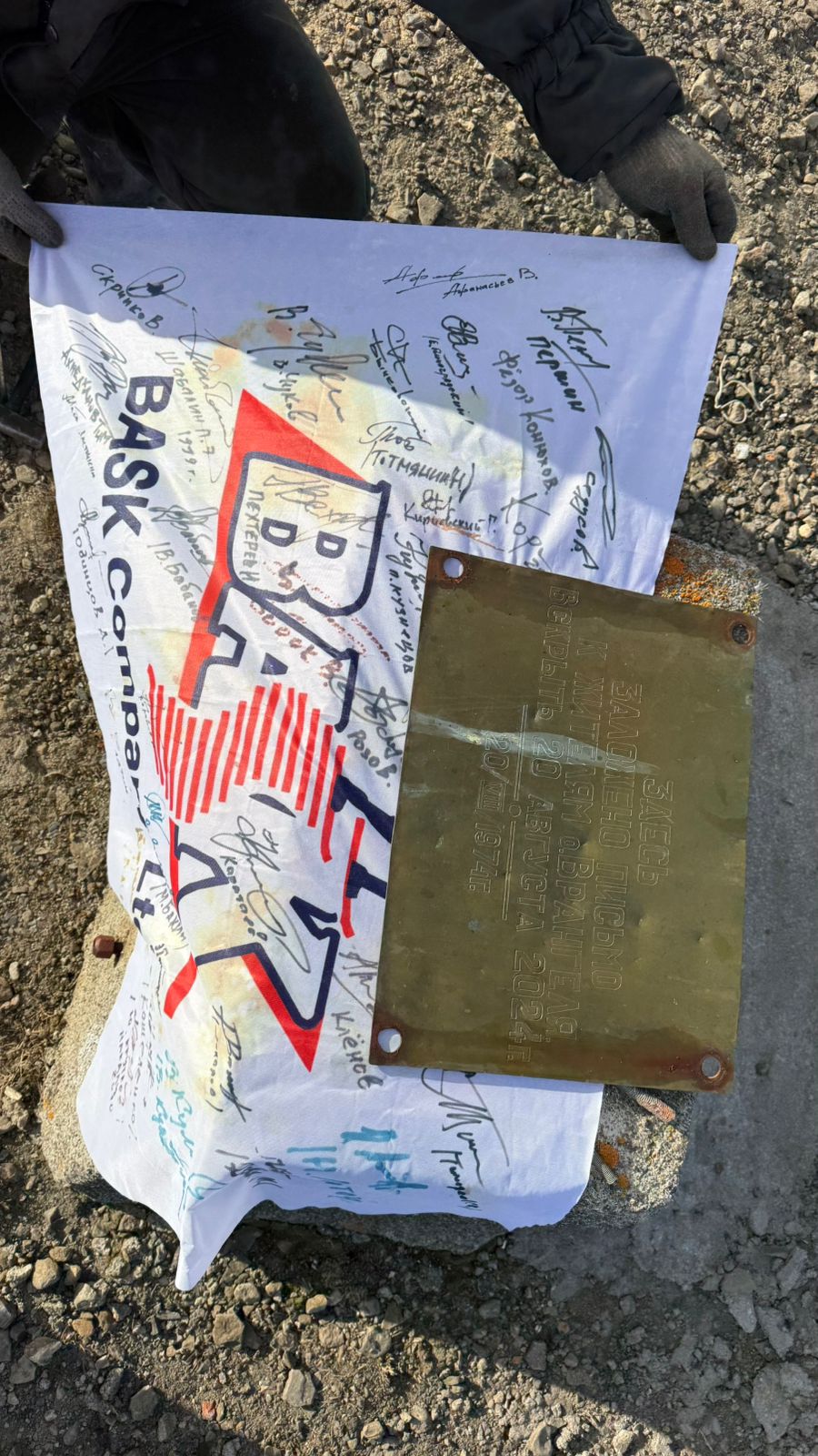 Вместе с флагом СССР во время церемонии над островом развернули исторический флаг БАСК – настоящую реликвию, на которой разместили свои автографы легендарные российские альпинисты, именитые путешественники, полярные исследователи, знаменитые на весь мир яхтсмены, с которыми БАСК сотрудничал в разное время за свою долгую, более, чем 35-летнюю историю. На флаге с одним из первых логотипов бренда – более четырех десятков автографов людей, золотыми буквами вписавших свои имена в великую летопись исследований, открытий и спортивных достижений.