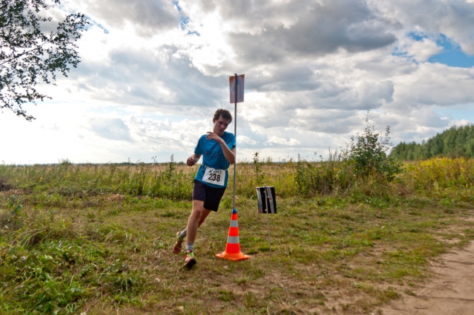 Сергей Смотраков оббегает дальнюю точку бегового круга и станцию электронного хронометража SportIdent