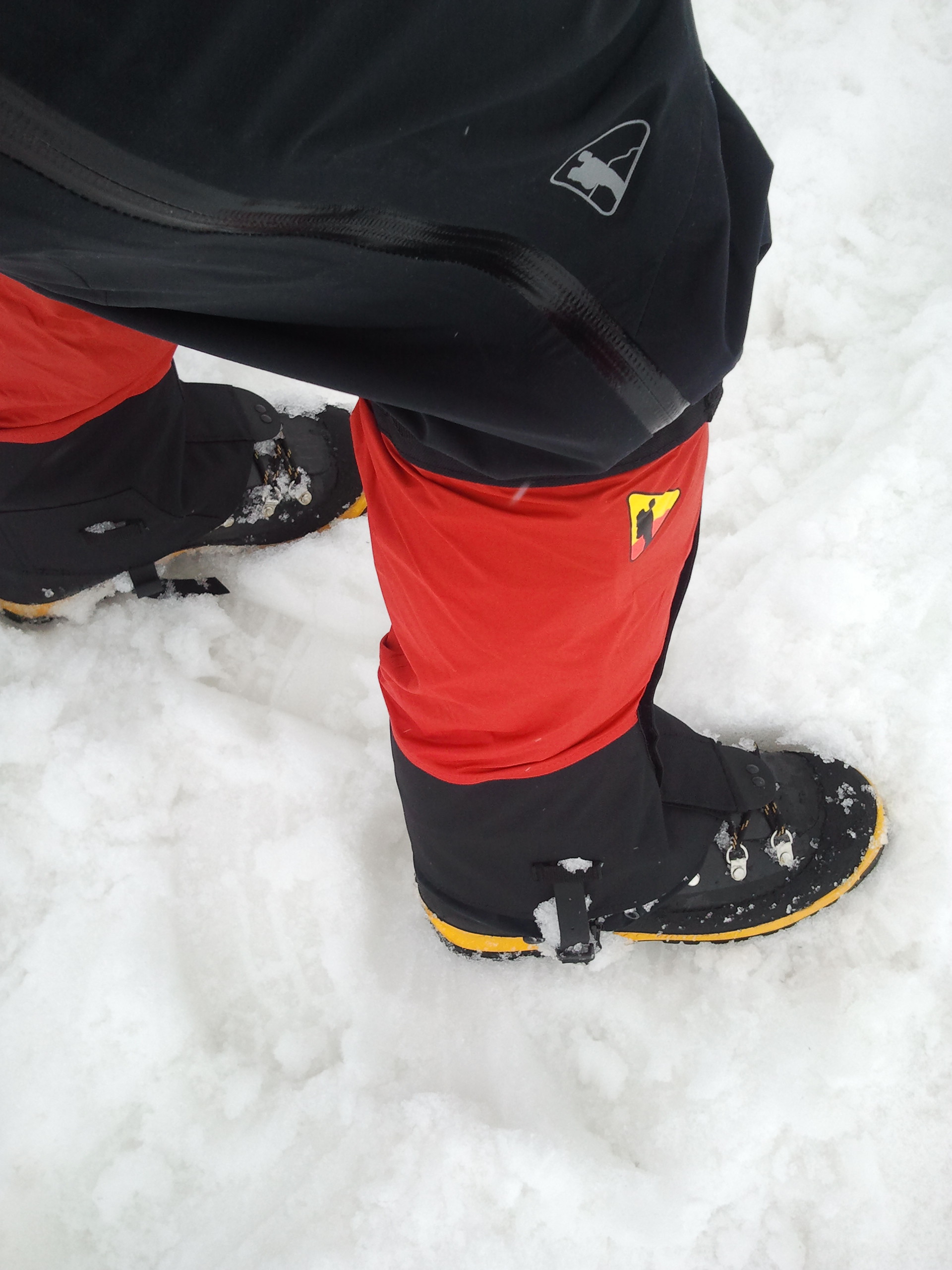 Единственное нарекание есть к гетрам. Они, конечно, очень удобные, тросик внизу классный, но внутренний слой не дышит и на нем скапливается конденсат. Альберту это не понравилось, но меня сей факт как-то не очень обеспокоил. Гетры красные, к куртке моей хорошо подходят;))))