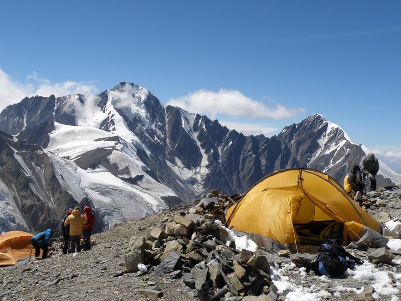 Поднимаемся в штурмовой лагерь, ставим палатки, отдыхаем. Начинается сильный ветер, около 30 м в сек. Ветер не прекращается всю ночь и утро. Решаем переждать непогоду.
