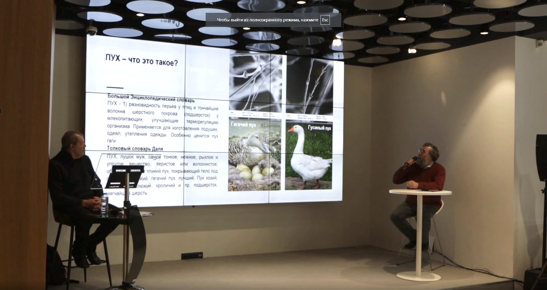 Позиции производственного сектора были посвящены доклады руководителя БАСК Богданова В.Ф. («Технологии использования пуха водоплавающей птицы – опыт БАСК. Взаимодействие с научно-исследовательскими институтами и лабораториями») и его заместителя по науке – Богдановой О.С. («Актуальные направления научных разработок ООО НПФ БАСК»).