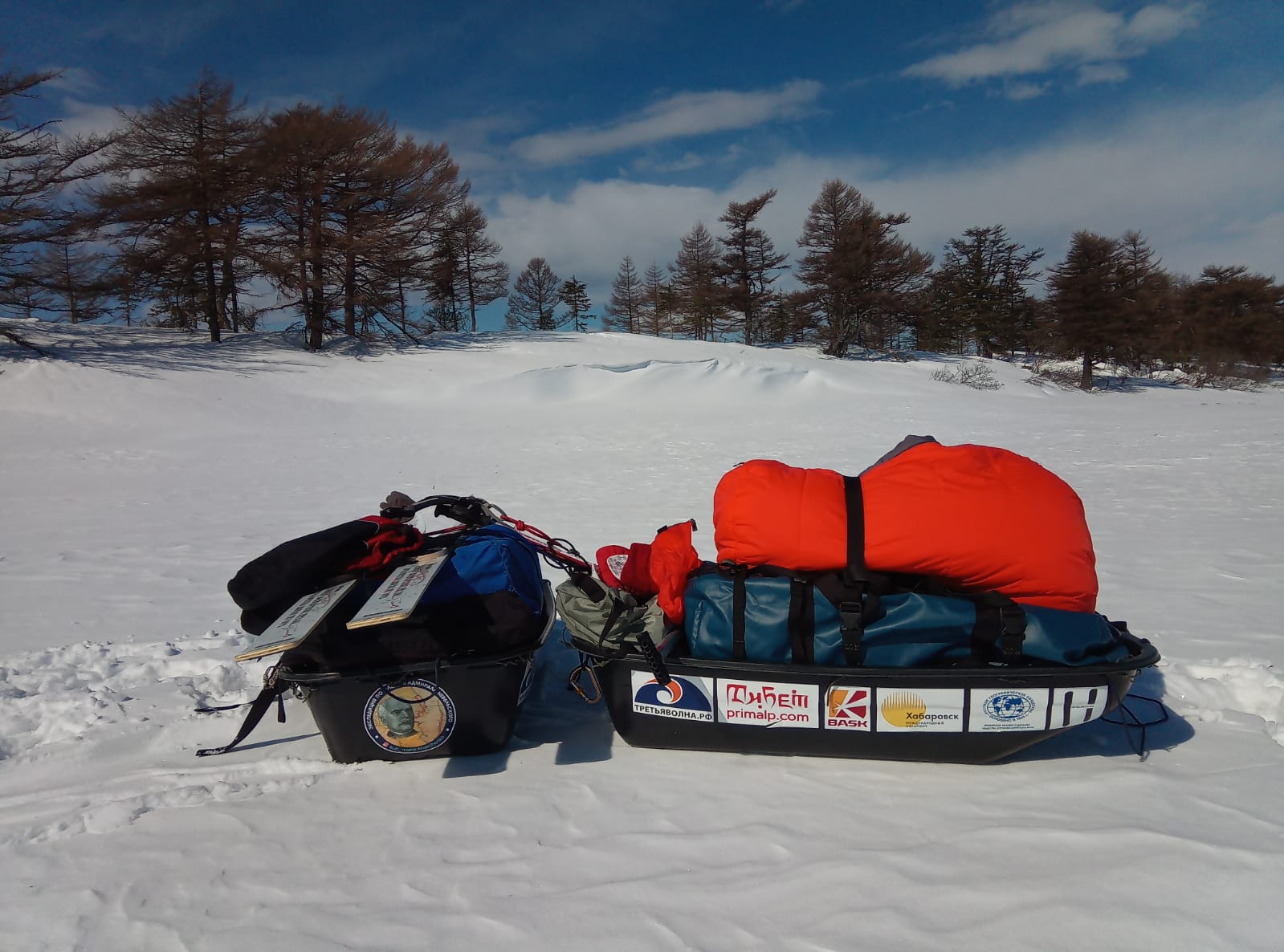 Да и на всем протяжении пути легкой дороги ожидать не приходилось: «На льду Амура оказались снежные заструги, и сквозь них пробивается дорога. Там колея до полуметра глубиной, идти пешком налегке можно, но вот тащить за собой груз в санях нельзя, – сани переворачиваются. Поэтому про дорогу пришлось забыть, и идти как обычно – по целине. Заструги до обеда были твердые, как бетон, потом солнце чуть пригрело, и они слегка размякли. Но все равно тащить сани, а они у меня около 60 килограммов, – тяжело. Там запас топлива, еды и одежды. Устал, – сил нет».