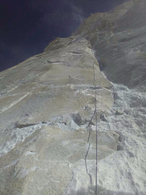 Сегодня полезли 2,5 веревки по бастиону. Рельеф богатый, но весь засыпан снегом и льдом. Быстро лезть не получается. А ещё хочется больших камалотов, а мы их не взяли.