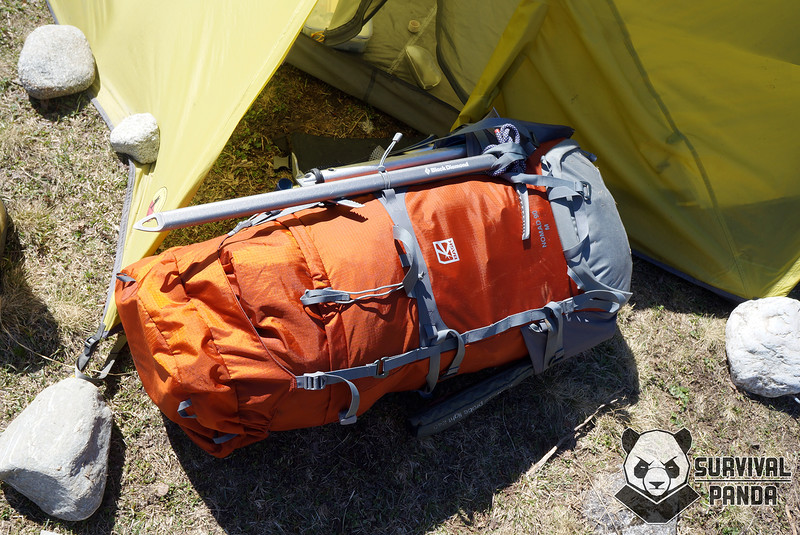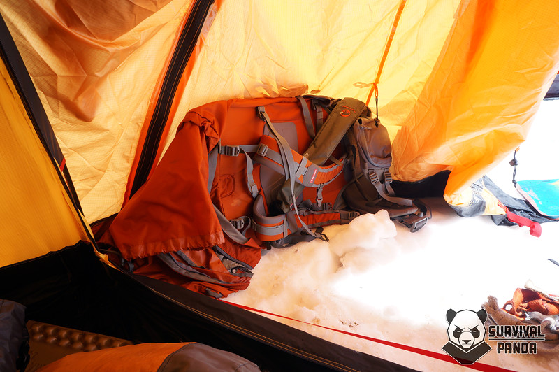 Во время "простоя" в штурмовом лагере выпотрошенный рюкзак отлично укладывался в тамбур палатки или использовался в качестве утепления стенок, практически не занимая места, в отличии от рюкзаков с мощными подушками в зоне спины и лямок.