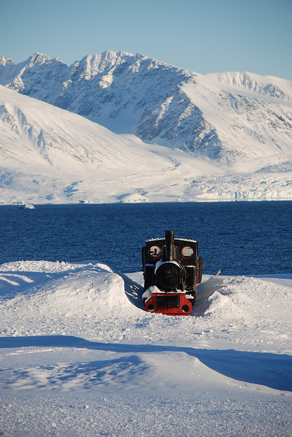 Зато день был прекрасный. Темная холодная вода, белые с темными прожилками горы и тучи на горизонте! И на фоне всего этого великолепия - странно яркий и цветной Ну-Олесунн.