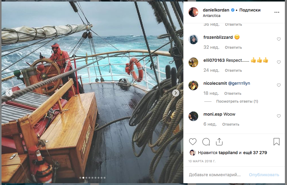 Обожаю Антарктиду. Можно подумать, что Антарктида малодоступное место, но это не так — там бывает очень много круизов. Как выглядит обычный круиз? Ты долго плывешь на корабле, потом тебя высаживают на часик на берег, чтобы ты побродил, с пингвинами поздоровался, и обратно на корабль. Мне же хотелось попасть в Антарктиду какими-то необычным способом, чтобы побольше времени провести там.