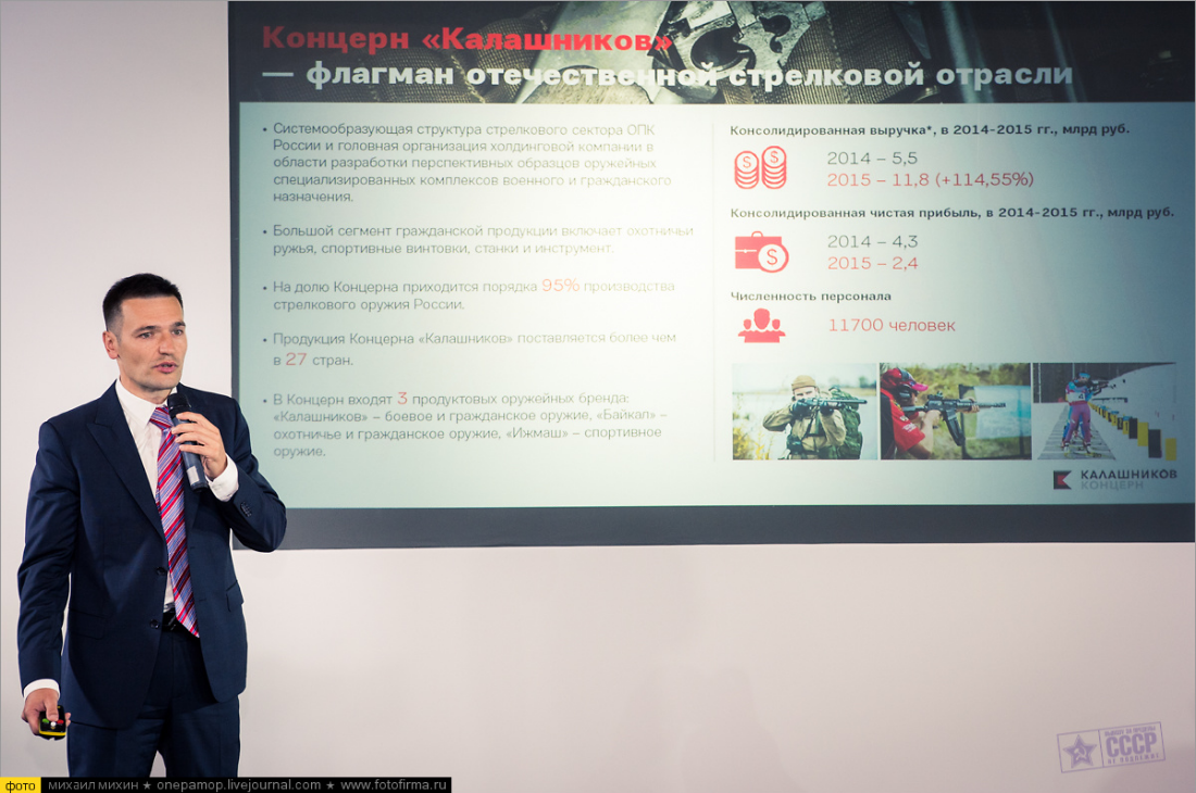«Около 50% выручки Концерна «Калашников» к 2020 году должна обеспечить продукция гражданского назначения. Этот показатель мы планируем достичь, в том числе за счёт вывода на рынок новых продуктовых категорий для массового гражданского потребителя: одежды, сувенирной продукции, макетов оружия и различных сопутствующих товаров для занятия спортом и ведения активного образа жизни, - отметил директор по маркетингу Владимир Дмитриев. — Мы рассчитываем, что в перспективе трёх-пяти лет это новое направление бизнеса будет приносить до 5% от общего оборота компании. Сейчас мы активно работаем над расширением собственной розничной сети, и открытие фирменного интернет-магазина — важный шаг в этом направлении».