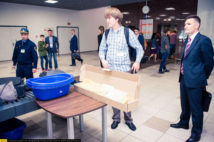 Сотрудники службы безопасности, контролирующие пассажиров при помощи технических средств при виде аккуратно упакованного автомата повели себя мужественно и приняли «соломоново» решение: установить на месте что из себя представляет данный экземпляр АК-105 (макет или боевое оружие) имеющимися силами возможным никак не представляется. Окончательный вердикт должен вынести специально приглашённый сотрудник полиции. Документы и надписи «ММГ» на макете никакого впечатления на них не произвели — «это каждый может написать на чём угодно». Позиция, в целом, понятная и логичная. Дополнительная проверка установила, что автомат оружием не является, документам соответствует и, стало быть, никаких угроз безопасности не представляет.