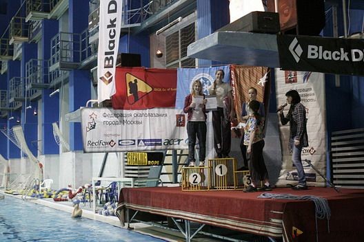 В первый раз крупные детские соревнования в Раменском прошли в марте этого года. Это было Первенство Московской области, совмещенное с Этапом Кубка Москвы. Их организатором был идеолог спортивного скалолазания в Раменском Михаил Дятлов. Михаил пригласил команду Баурок провести совместные соревнования и привлек наше внимание к уникальному в своем роде скалодрому – высокая, нависающая конструкция прямо над бассейном.