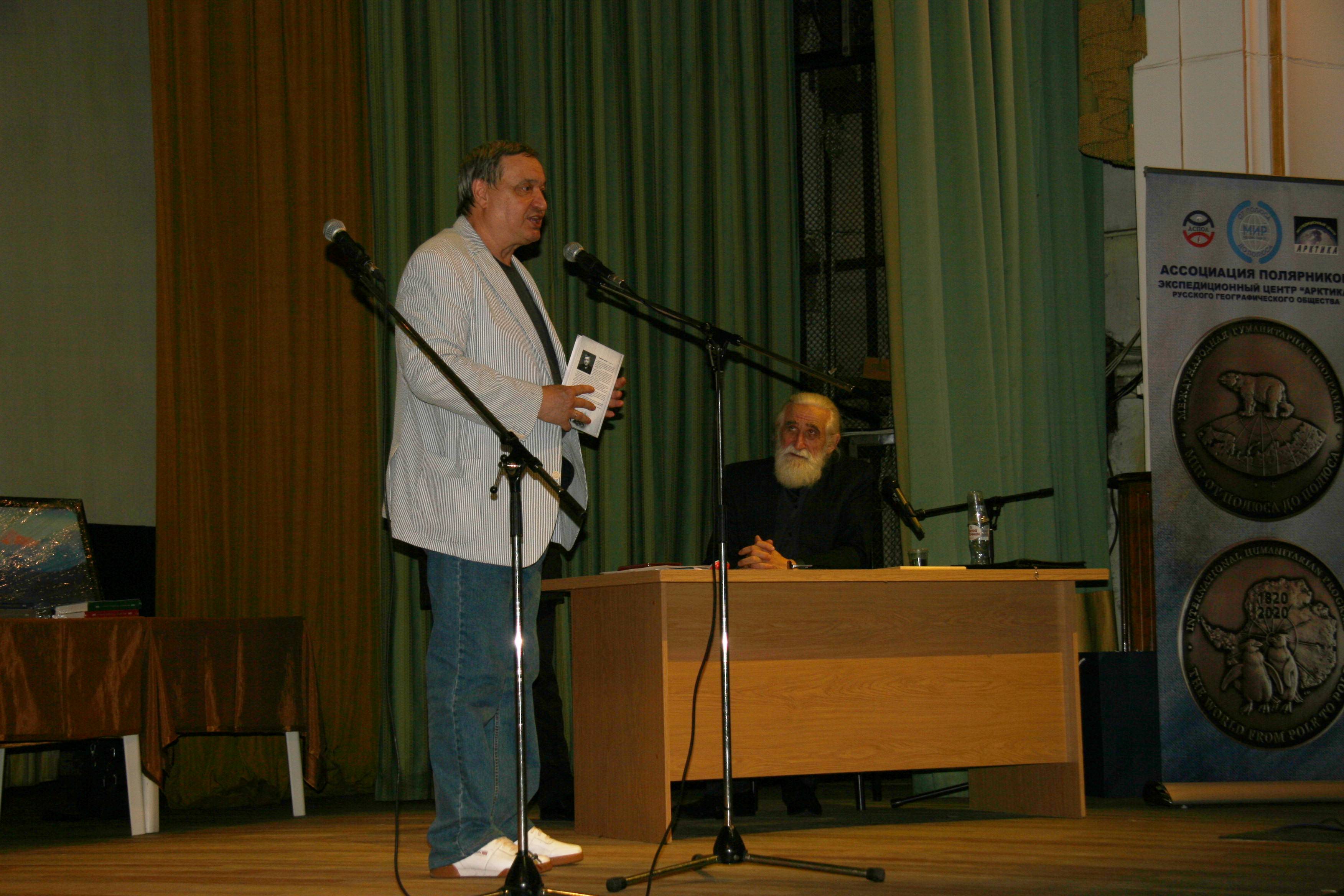 Юбилейный вечер в Московском доме ученых получился удивительно теплым, – статусным, при этом совершенно лишенным излишнего пафоса. Такая атмосфера, наверное, присуща недолгим «привалам» в сложных арктических походах, в которых каждый чувствует плечо и сопричастность. Где о великом – просто, где поют, читают стихи, вспоминают общее и буднично обсуждают новые, – очень важные, безусловно, опасные, но такие нужные, – планы.