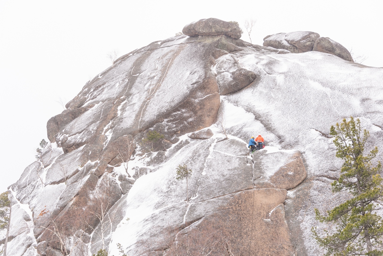 «Как ни странно, но в конце февраля в Сибири было непривычно тепло, но зато снежно и иногда ветрено. Благодаря таким не экстремальным условиям (хе-хе), участники много лазили, много топтали на подходах к местам занятий, а некоторые еще и перекопали горы снега на маршрутах на зачетных восхождениях.