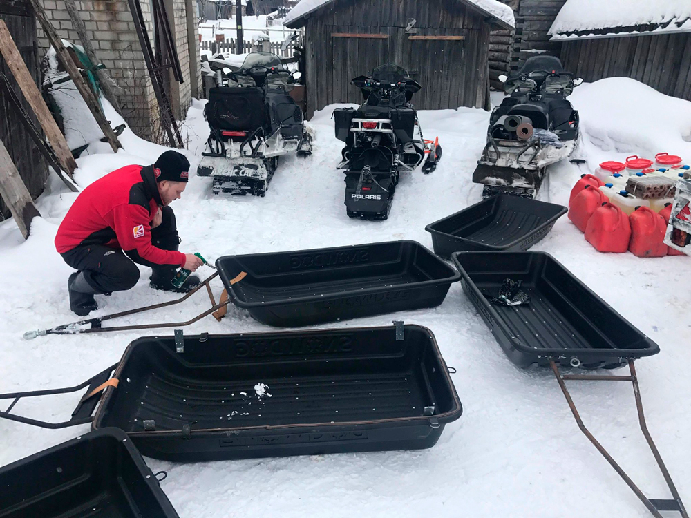 Технику привезли на автоприцепах из Терема Асташово, Костромской области и из Москвы. Целый день шли сборы и упаковка снаряжения и топлива. И вот завтра пройдет старт от памятника погибшим войнам ВОВ города Мезень. Останется позади суета больших городов , и потянутся экспедиционные будни , бескрайние просторы заснеженной тундры, просторы замерзших рек и морские льды.
