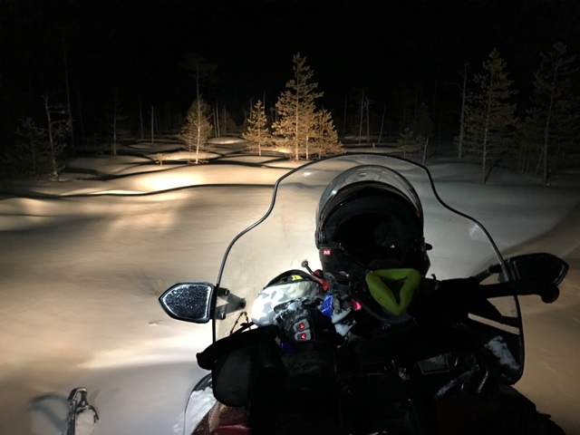 Прохождение маршрута по суше возможно только в зимний период в связи с большим количеством водных препятствий и болот на пути. Выбор снегохода, как транспорта, обусловлен его неприхотливостью, высокой проходимостью, скоростью и доступностью по сравнению с другими вездеходными средствами.