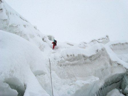 О:Ну, поначалу все шло хорошо, просто даже замечательно. Приехав на место, мы увидели, что снега зимой вообще почти не выпало, ледники голые, склоны стоят оттаявшие. На Хан Тенгри вообще путь был замечательный, тропить приходилось очень немного. Все шикарно, но погода, как обычно, не идеальная – несколько дней хорошей, несколько – плохой. Выпадало немного снега, поднимался сильный ветер, портилась видимость. Нормальная, в общем, тяньшаньская погода. Но потом портиться она начала с ускоряющейся периодичностью. Хороших дней стало меньше, плохих – больше.