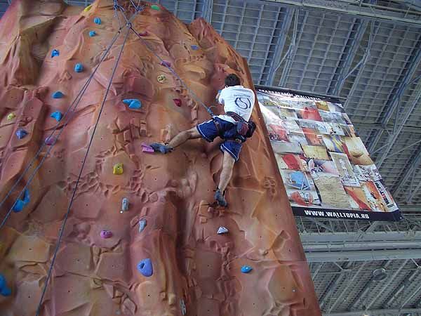 Особое место в программе спортивной выставки занимало проектирование, строительство и реконструкция новейшиех спортивных сооружений. Среди представленных в выставочном павильоне сооружений самым заметным и привлекательным объектом стал, бесспорно, мобильный скаладром производства WALLTOPIA, дистрибьютором продукции которой в России является компания Баск. Этот уникальный тренажер 8-метровой высоты, с площадью поверхности 35 м2, выполненный в цветовой гамме натуральной скалы из рельефных пластиковых панелей, с маршрутами разного уровня, демонстрировался впервые и пользовался успехом посетителей выставки от мала до велика.