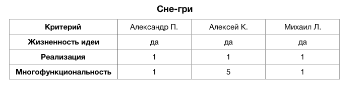- жизненность идеи (да/нет)