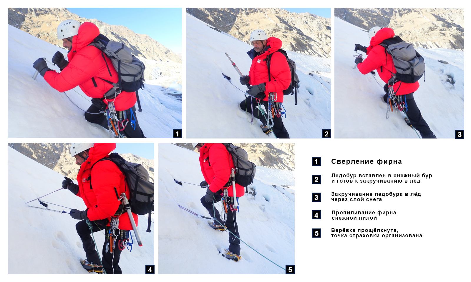 Используется в сочетании со снежным буром для быстрого пропиливания снежно-фирнового склона непосредственно к точке страховки (ледобуру). Позволяет избежать при срыве участника усилия на точку страховки, направленного вдоль оси ледобура.