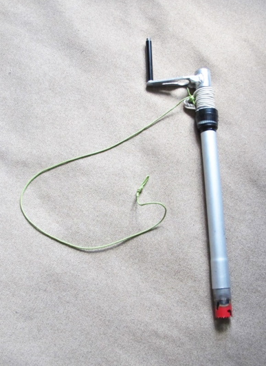 Выводы: Конструкция требует значительной доработки по части удобства сверления фирна — не очень удобно прикладывать надавливающее усилие. Необходимо привести длину трубы в соответствие с длиной среднего ледоруба (70см). Надо решить проблему удобства очистки трубы от снега. Требует использования ледобуров с переделанной конструкцией уха. Может, в принципе, использоваться как точка страховки или как рукоятка для лопаты. Является естественным чехлом для пилы (см. ниже)