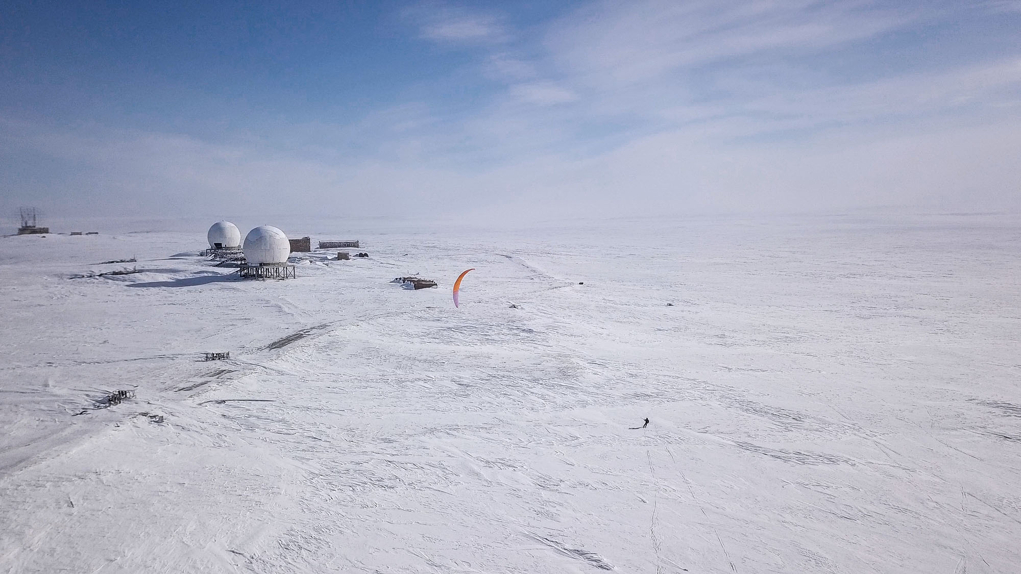 Сегодня утром ребята стартовали по-настоящему — под кайтами. В таких путешествиях начинаешь прислушиваться к погоде как нигде. Если вчера был сильный ветер, то сегодня он утих, но, что бесценно, двигаться позволяет. Ожидается до -27С. В ход пошли самые большие кайты на длинных стропах.