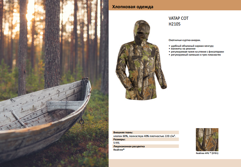 В этом году основные изменения произошли в расцветках. Мы распространили лицензионные паттерны Realtree® и KingCamo® на всю теплую одежду, Softshell и аксессуары.