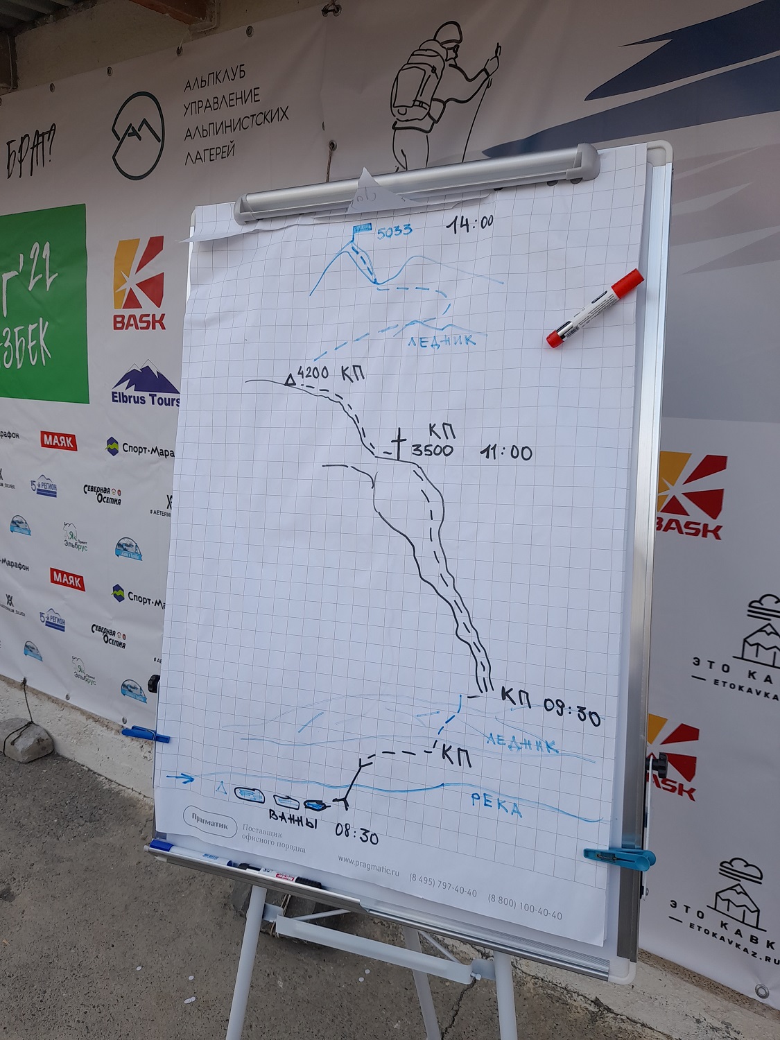 Трасса была промаркирована, провешена перильными веревками и разбита на этапы, оборудованные контрольными пунктами (КП) со строго определенным контрольным временем прибытия. Спортсмены, не уложившиеся в это время, поворачивали вниз, чтобы спуститься засветло.