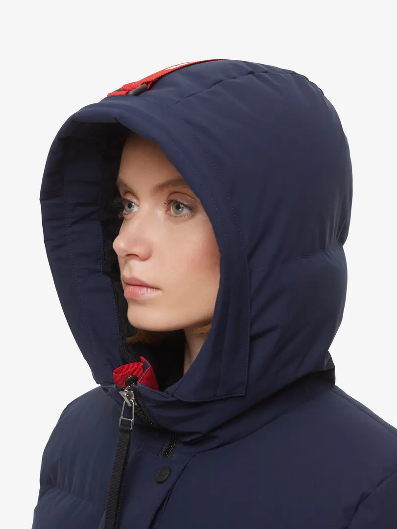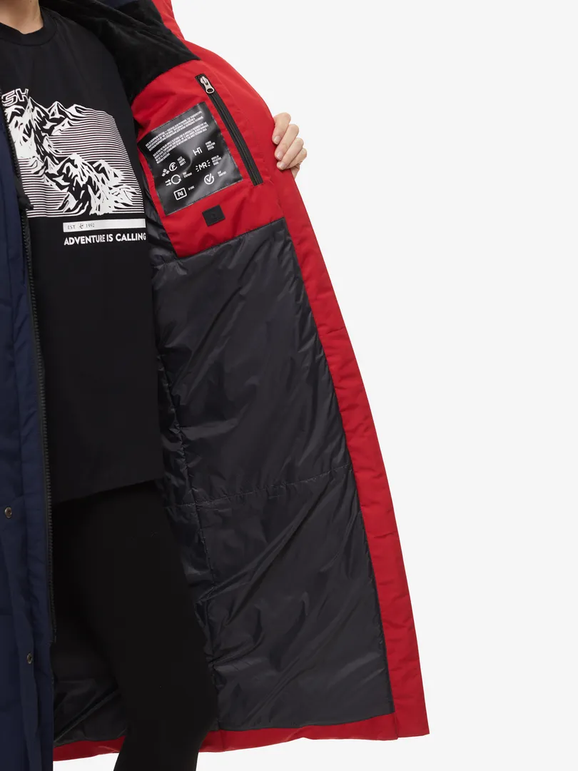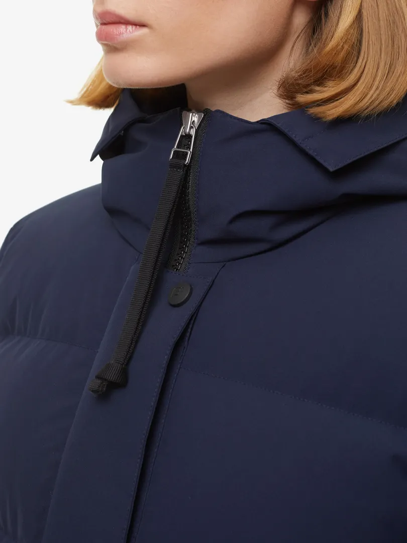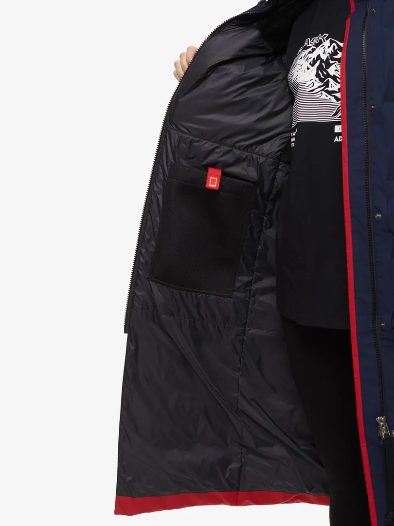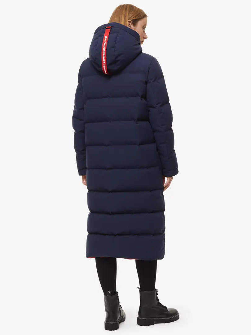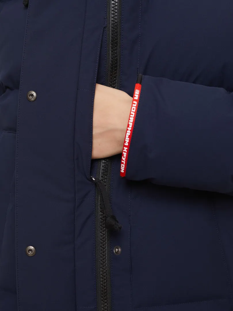 Женское длинное пуховое пальто прямого кроя, предназначено для холодных городских зим