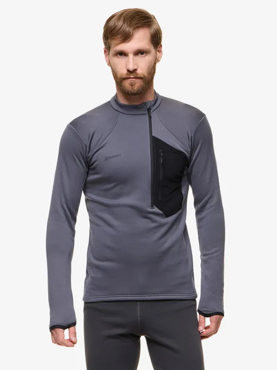 Теплое мужское термобелье-верх с ассиметричной молнией из ткани Polartec® Power Stretch® Pro