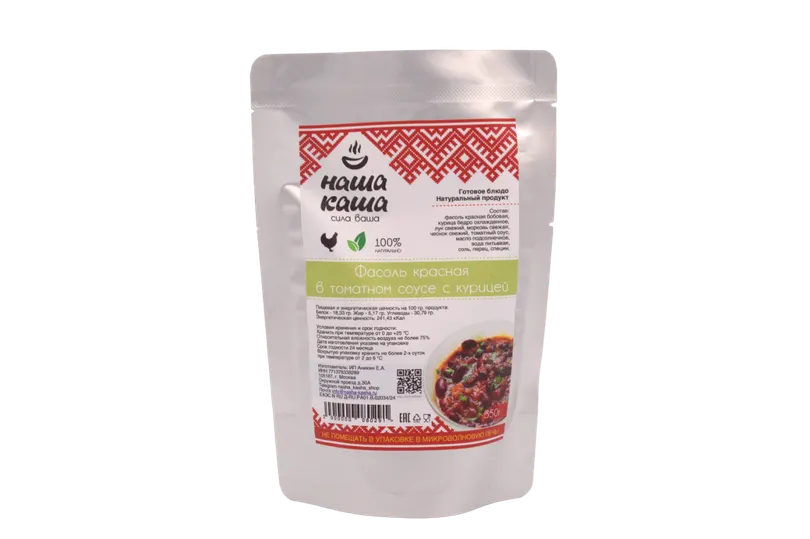 Фасоль красная в томатном соусе с курицей "Наша Каша" 350г.