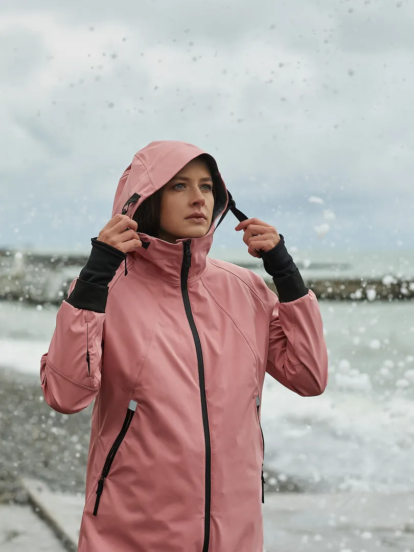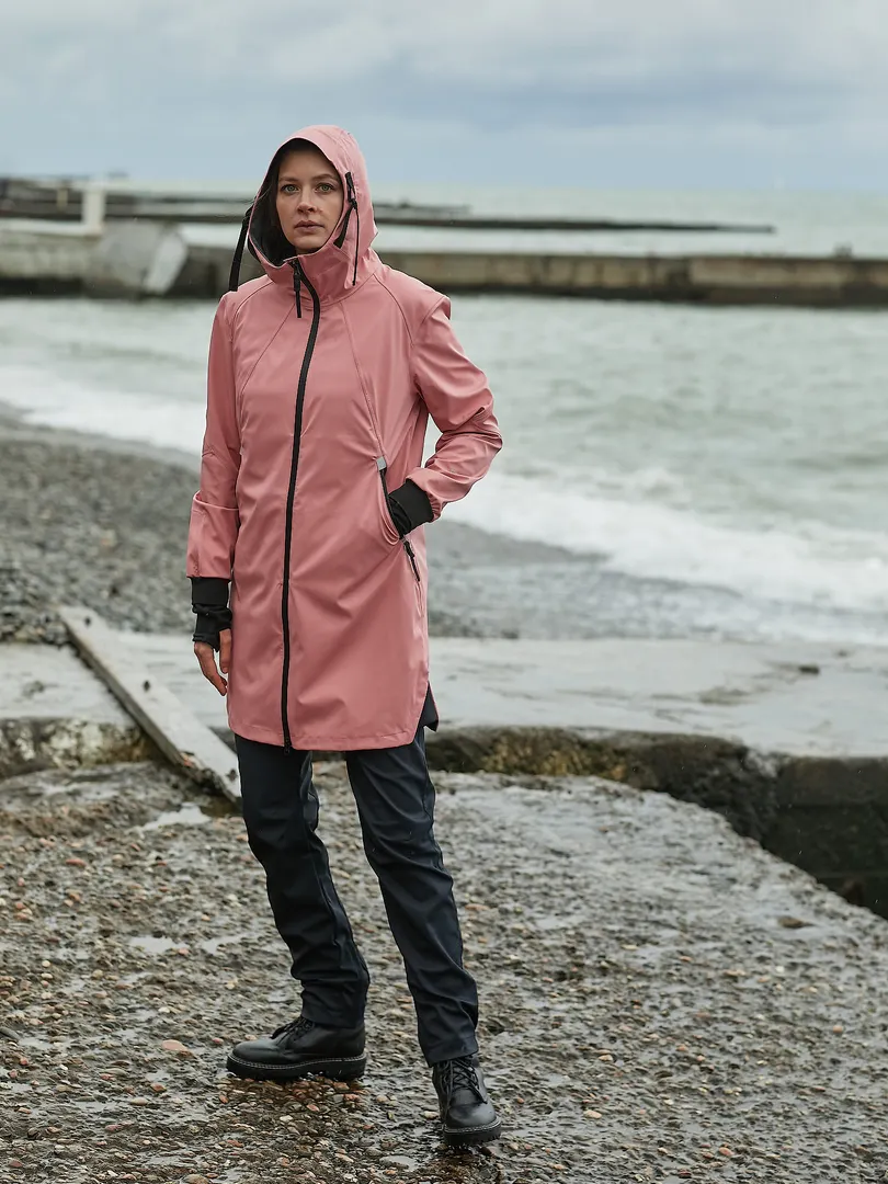 Легкий женский плащ в спортивном стиле из материала софтшелл