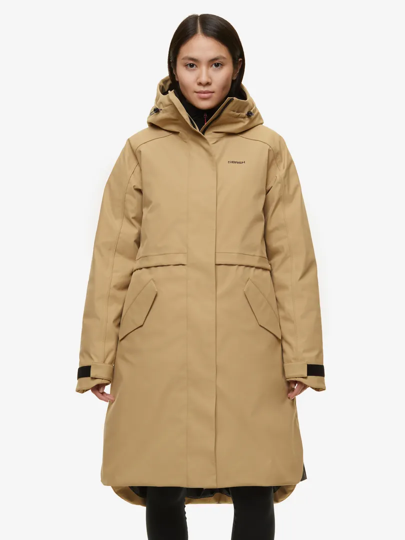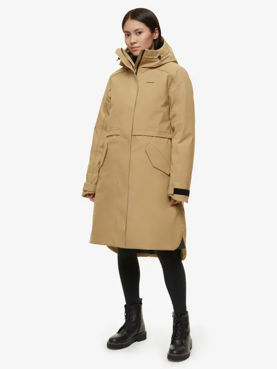 Теплое изящное пальто на синтетическом утеплителе для женщин