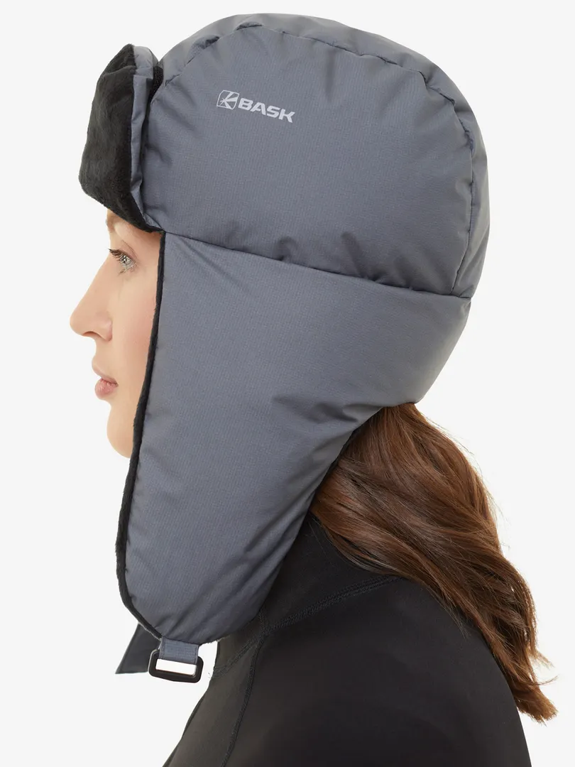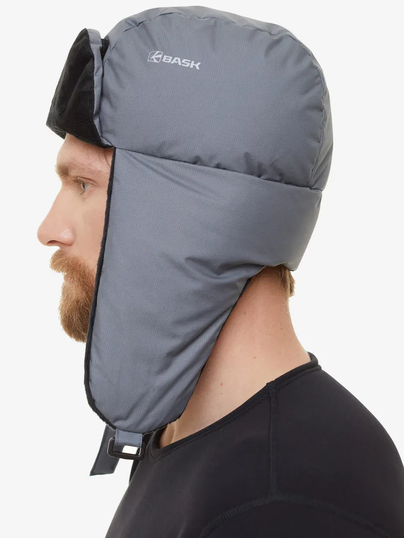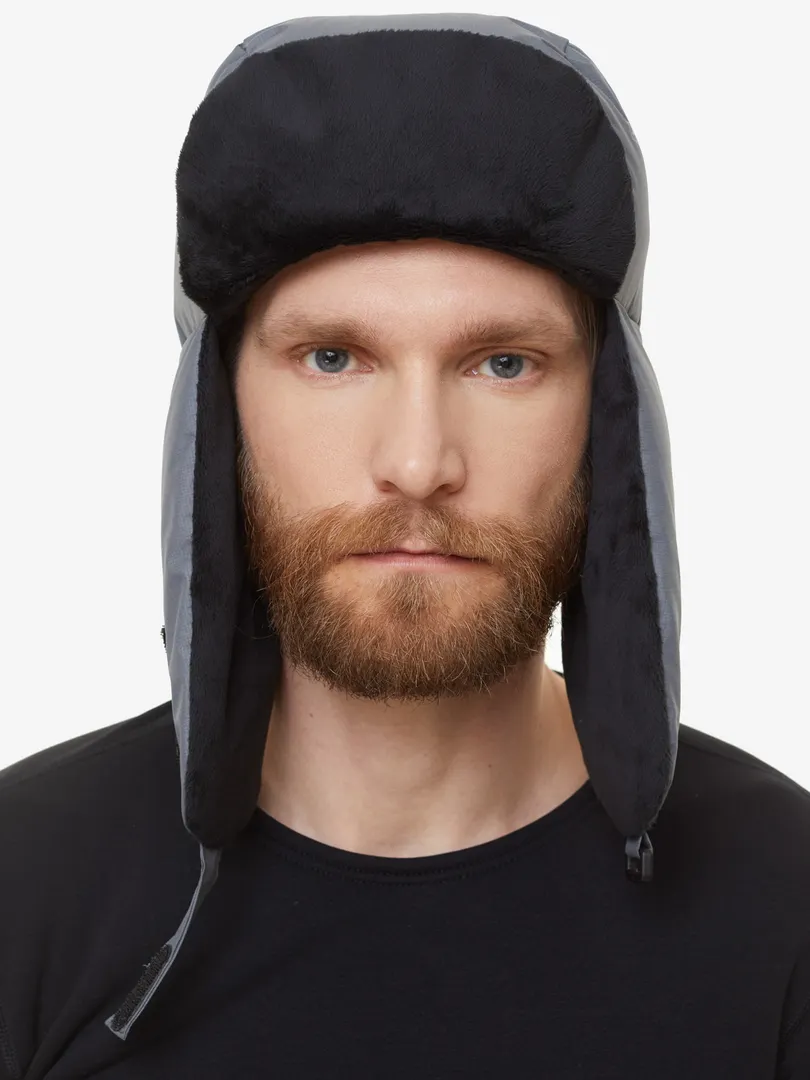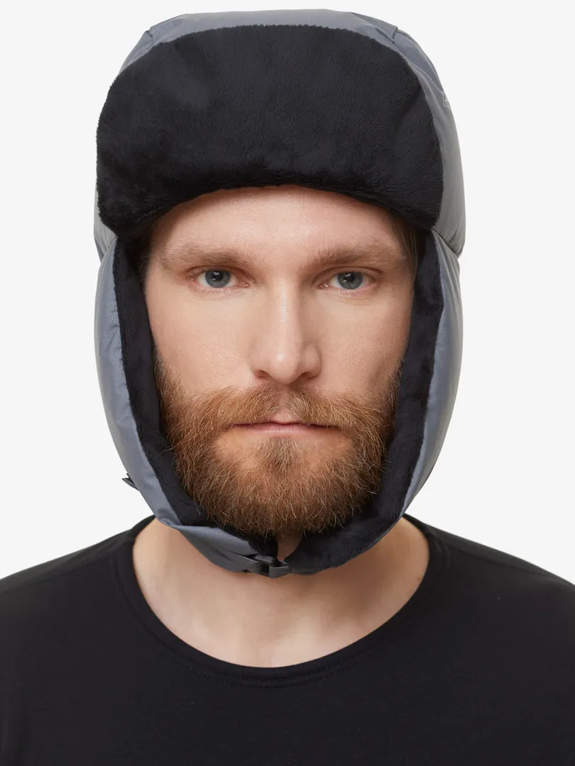 Теплая шапка-ушанка унисекс из плотного мембранного материала и утеплена натуральным гусиным пухом