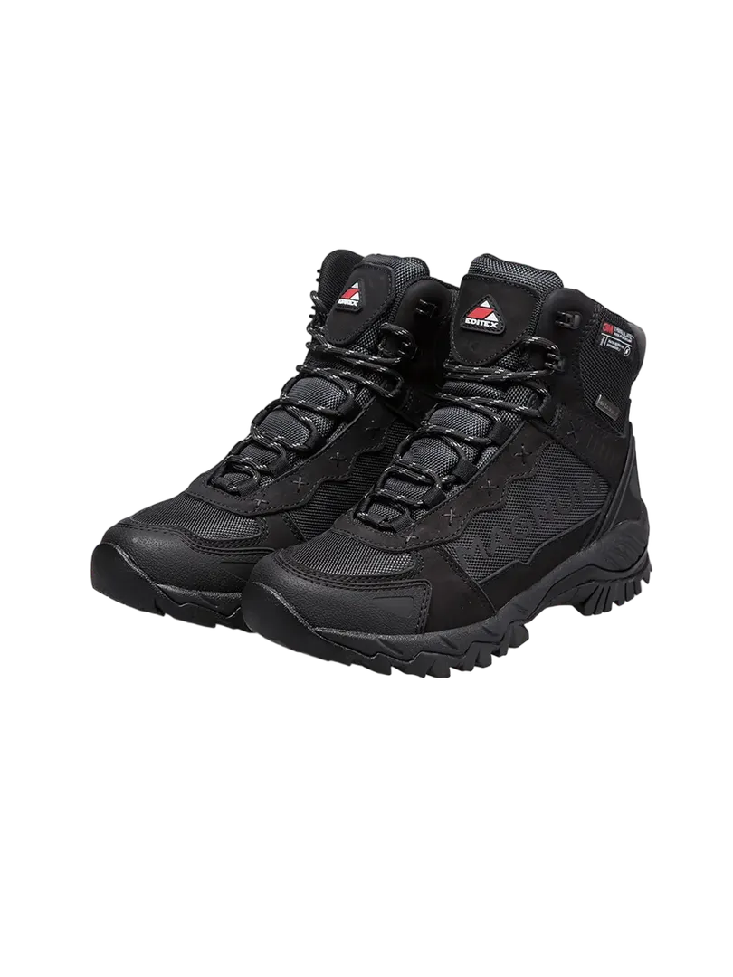Ботинки EDITEX MAGNUM – обувь для настоящих мужчин с характерным дизайном. В данной модели использованы технологии, проверенные временем. Комбинированный верх из натурального нубука и износостойкого текстиля полностью пропитан водоотталкивающим составом. Язычок обуви вынесен вверх, создавая дополнительный защитный барьер. Фирменная мембрана WWB (Waterproof Windproof Breathable) создает сухой и теплый климат внутри обуви, обеспечивая водонепроницаемость и хороший воздухообмен. Ботинки хорошо проявляют себя и при низких температурах, благодаря высокотехнологичному утеплителю Thinsulate (200gr.), его тонкие микроволокна при взаимодействии с воздухом, возвращают к стопе вдвое больше тепловой энергии. Долговечная и воздухопроницаемая стелька OrthoLite повторяет внутреннюю поверхность обуви придавая дополнительную амортизацию. Стелька обладает антимикробным покрытием, которая защищает от инфекций и неприятных запахов. Подошва с подметкой USP (Ultra Slip Protection) уверенно ведет себя на сухих, влажных, рыхлых и твердых поверхностях.