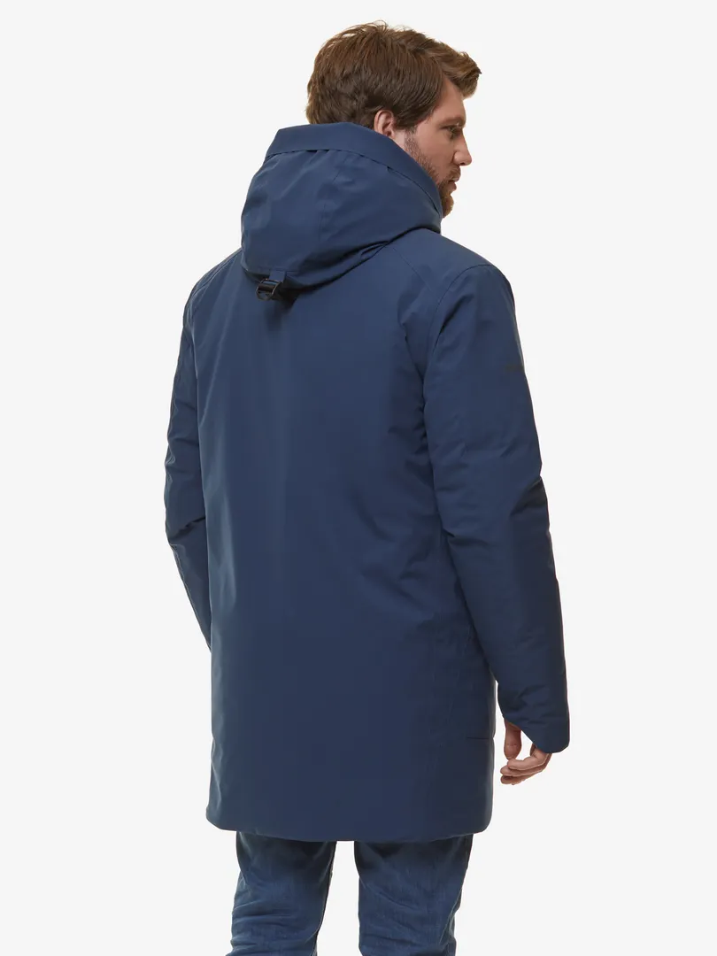 Удлиненная теплая и легкая мужская куртка из мембранной ткани на синтетическом утеплителе