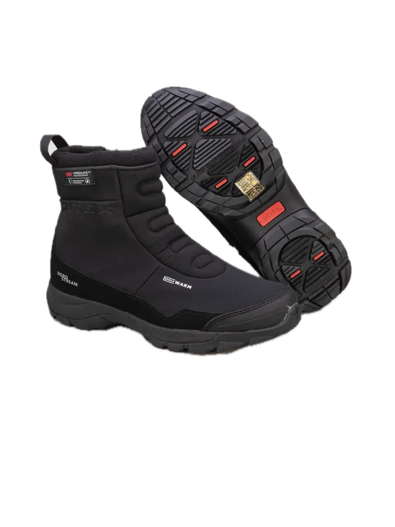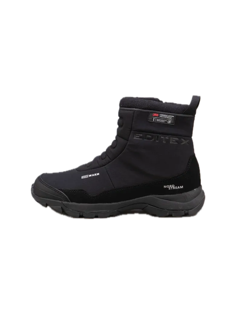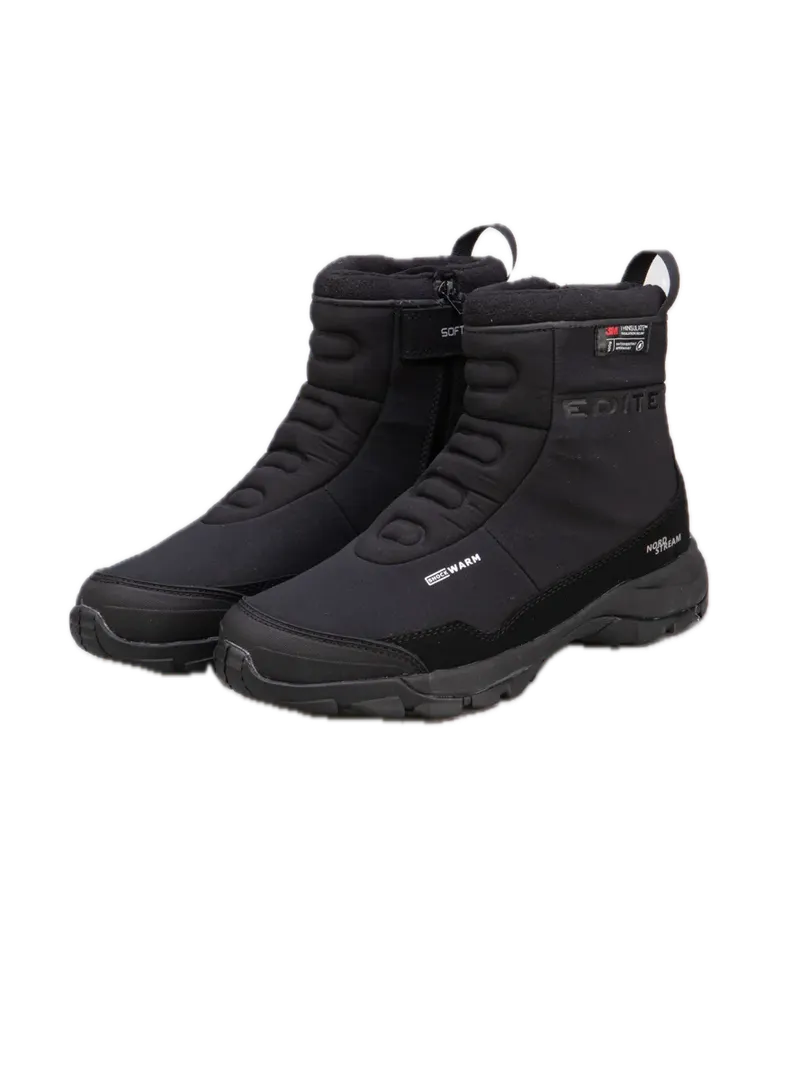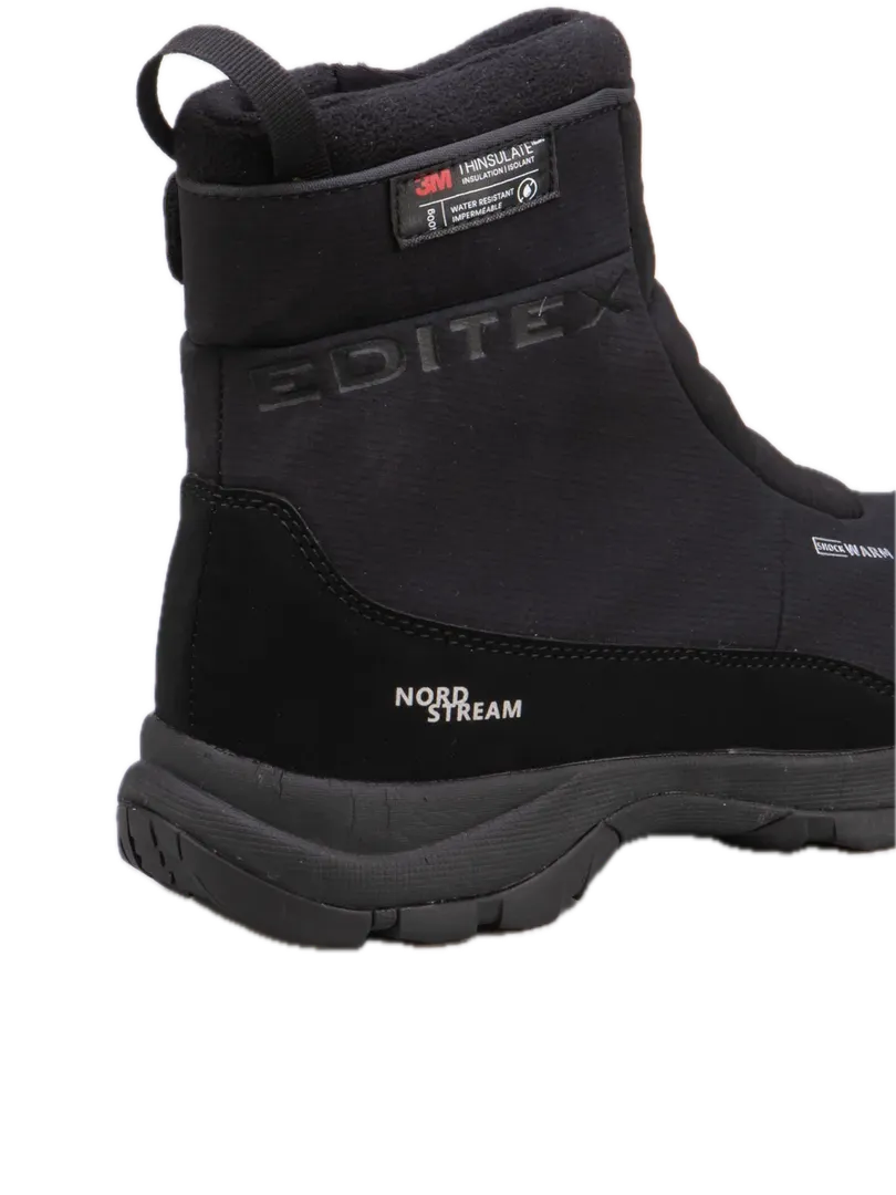 Женские сапоги EDITEX NORD STREAM созданы для носки в непростых погодных условиях. Верх выполнен из износостойкого эластичного материала SoftShell. Фирменная мембрана WWB (Waterproof Windproof Breathable) создает сухой и теплый климат внутри обуви, обеспечивая водонепроницаемость и хороший воздухообмен. Ботинки хорошо проявляют себя при низких температурах, благодаря высокотехнологичному утеплителю Thinsulate (400gr.), его тонкие микроволокна при взаимодействии с воздухом, возвращают к стопе вдвое больше тепловой энергии.Резиновая накладка защищает ботинок от камней и препятствует быстрому износу. Регулируемый ремешок и водонепроницаемая молния YKK с внутренней стороны ботинка созданы для удобства в надевании и надежной фиксации голени. Мягкая съемная стелька Ortholite обеспечивает комфорт, а ее пористая структура с бактерицидной пропиткой предотвращает развитие бактерий и запахов. Подошва USP (Ultra Slip Protection) состоит из слоев EVA и прочной резины, обеспечивает легкость, хорошую амортизацию и надежное сцепление с любой поверхностью, стойкость к истиранию.