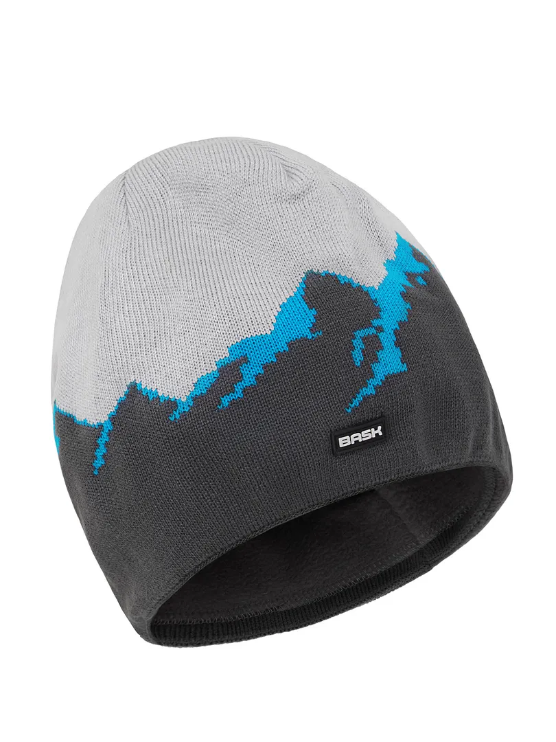 Трикотажная шапка бини c принтом «Горы» на флиcовой подкладке для зимы и холодного межсезонья