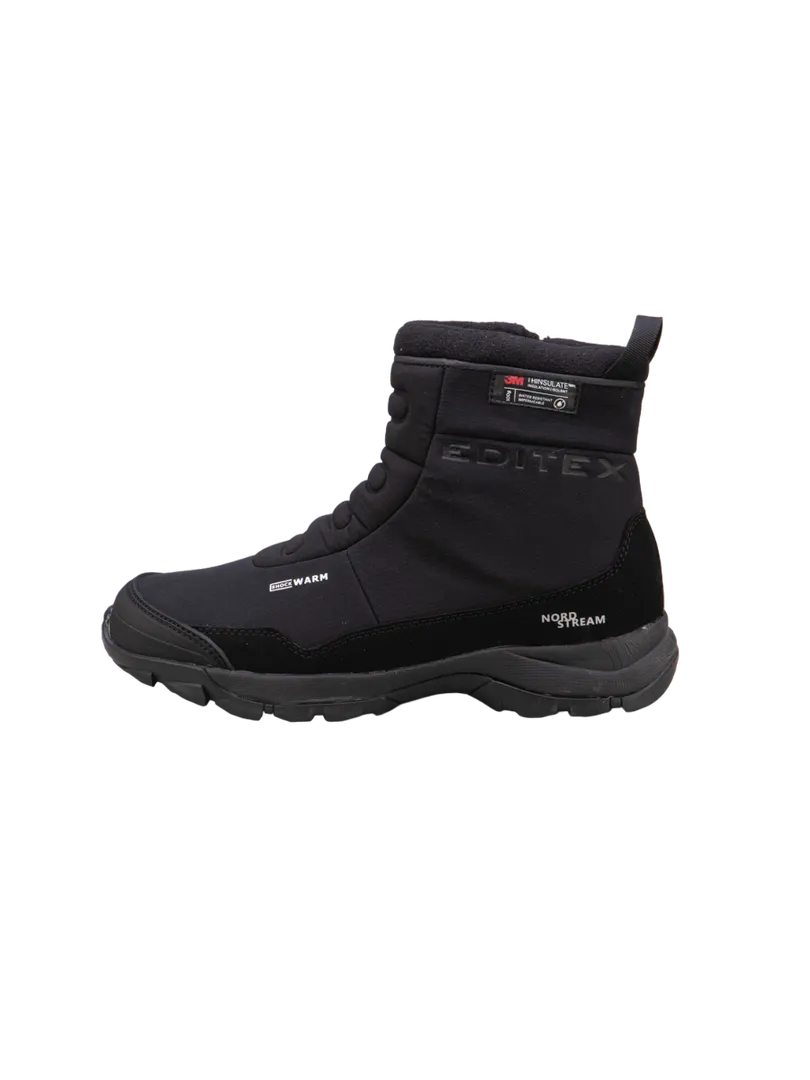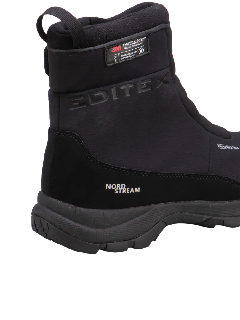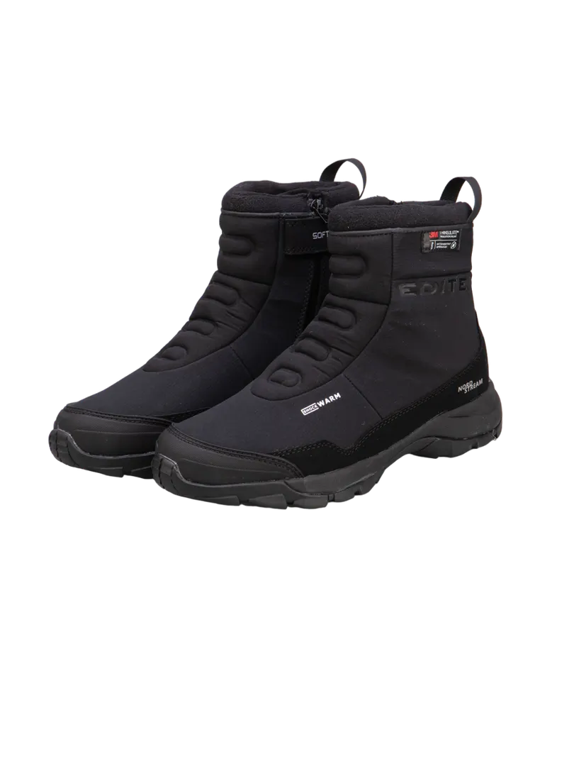Ботинки EDITEX SATELLITE разработаны специально для комфорта ног в холодную и сырую погоду. Бесшовная конструкция верха выполнена из эластичного материала SoftShell, который защищает от непогоды и идеально охватывает стопу. Внутри обуви использована мембрана WWB (Waterproof Windproof Breathable), которая вместе с эффективным утеплителем Thinsulate обеспечивают полную водонепроницаемость и удерживают тепло. Регулируемый ремешок и водонепроницаемая молния с внутренней стороны ботинка созданы для удобства в надевании и надежной фиксации голени. Мягкая съемная стелька из материала Ortholite с бактерицидной пропиткой. За амортизацию отвечает промежуточная подошва EVA, она значительно снижает степень ударной нагрузки на позвоночник и суставы. Особый состав и рисунок протектора USP (Ultra Slip Protection) обеспечивают максимальное сцепление со скользкой поверхностью и высокую износостойкость.