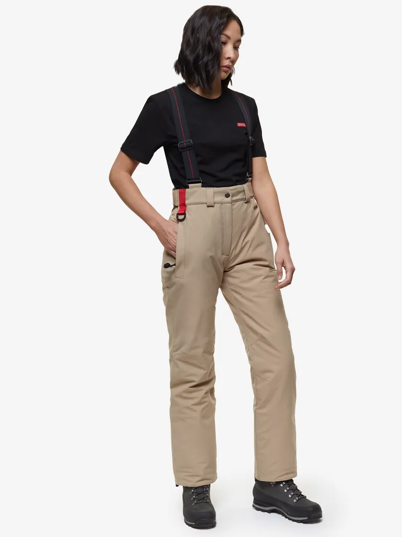 Классические утепленные женские брюки на помочах для прогулок и активного отдыха зимой