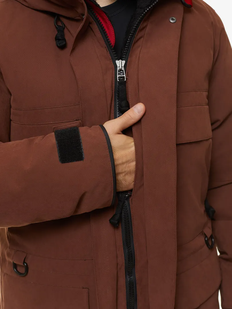 Теплая и удобная мужская парка на пуховом утеплителе с возможностью обогрева карманов